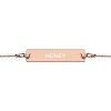 This engraved bar chain bracelet with a sterling silver pendant can become anything you want it to be, from a meaningful gift for a loved one to a sleek accessory for your own use. The sharp engraving won’t fade for a very long time, making the bracelet a guaranteed favorite in anyone’s jewelry box.